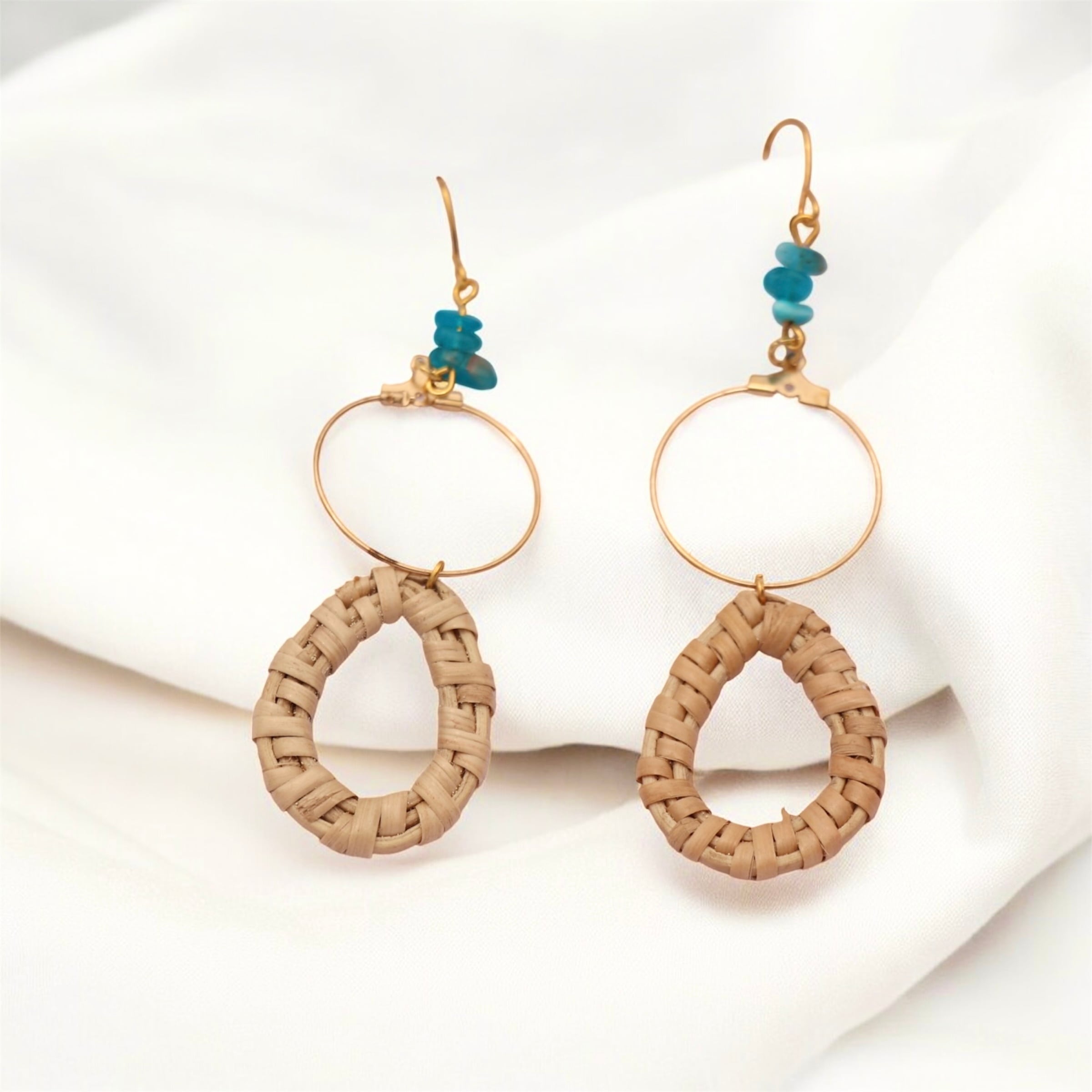 カンボジアの村のお母さんたち一つ一つ丁寧に制作した雫型ロングピアス♪