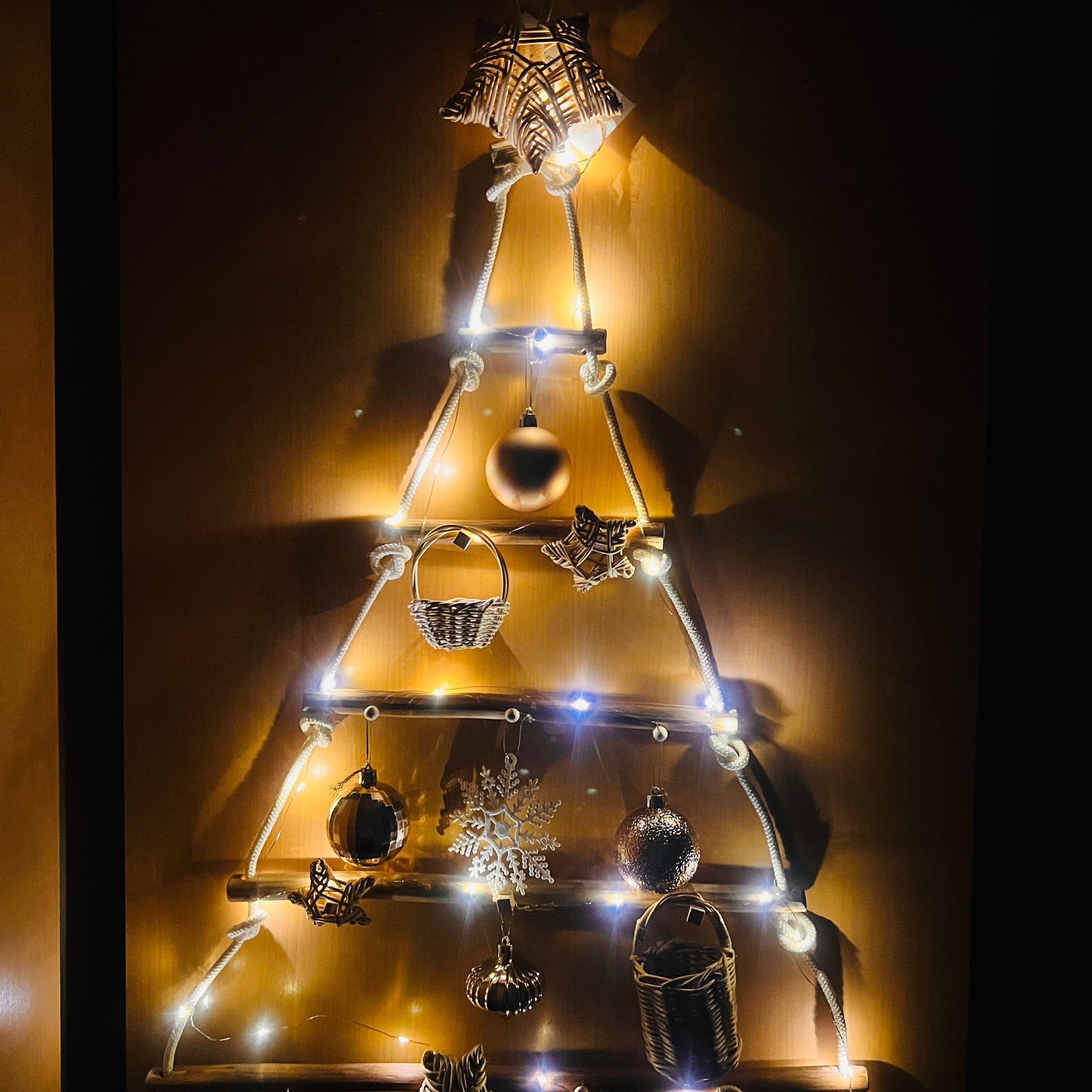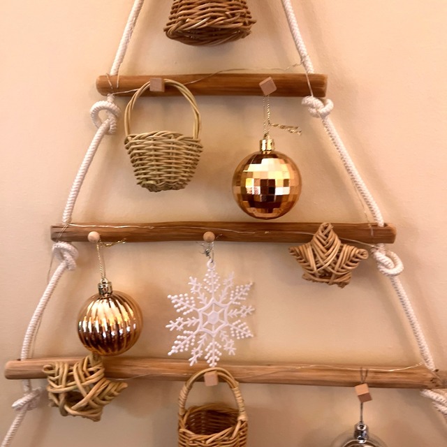壁掛けツリーが、冬のお部屋にそっと寄り添い、