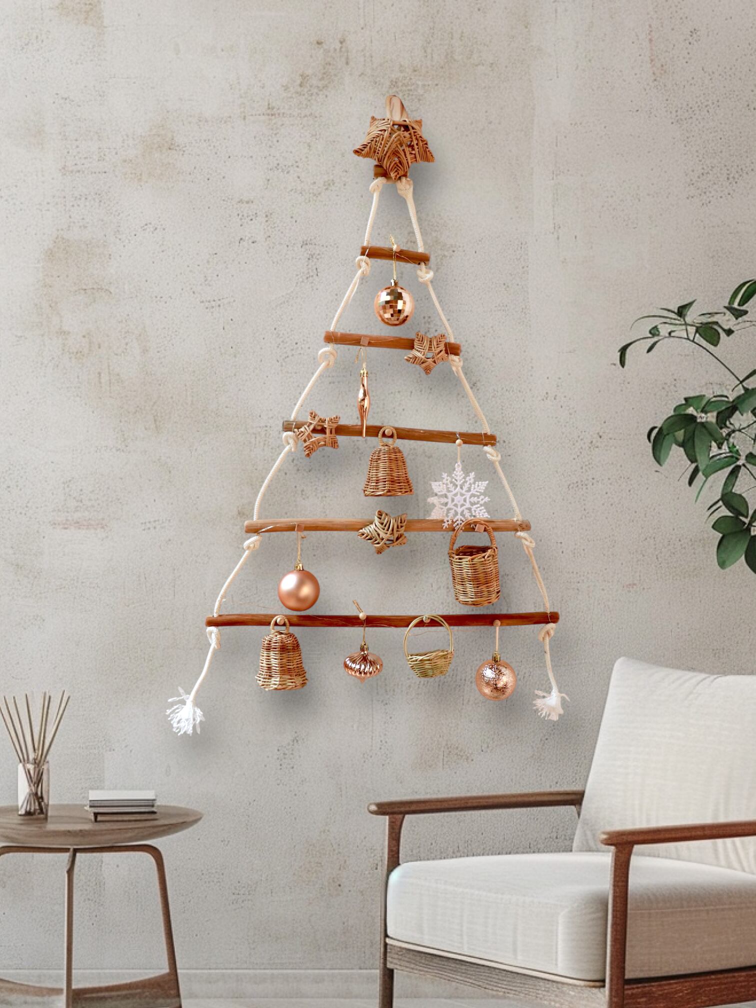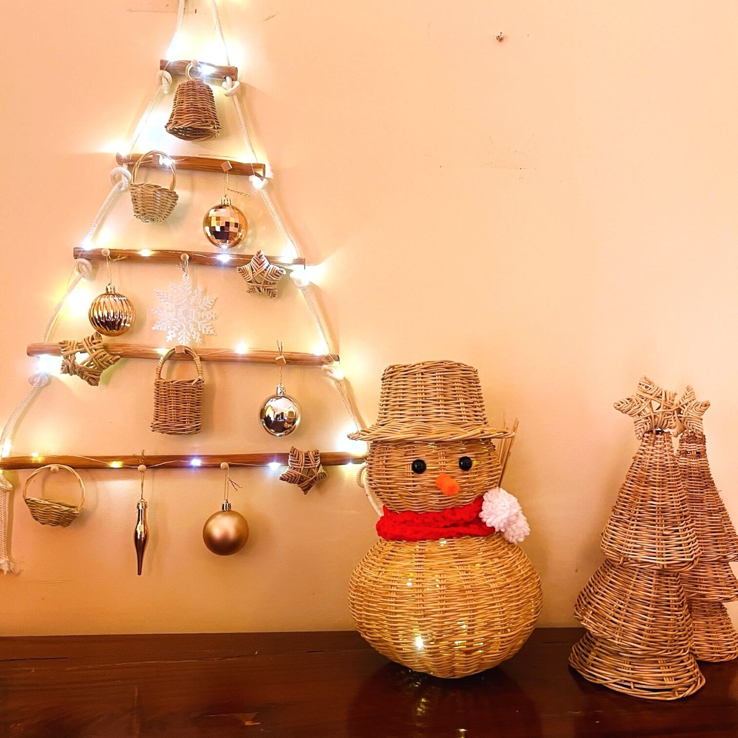 ラタン壁掛けXmasツリー(ラタンオーナメント付き)